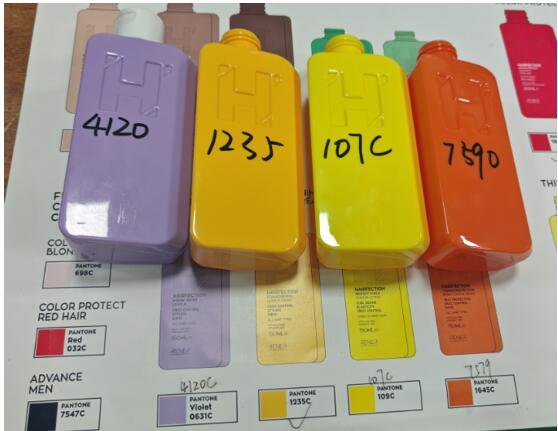 Color Matching : While molds were being fabricated, we synchronized with the client to finalize color schemes. Using PANTONE color standards, we matched custom hues such as 3395C, 346C, 603C, 7590C, and 1235C, tailored to the RENER brand’s “HAIRFECTION” product line (including Color Protect, Hydrate, Thermo-Protection series).