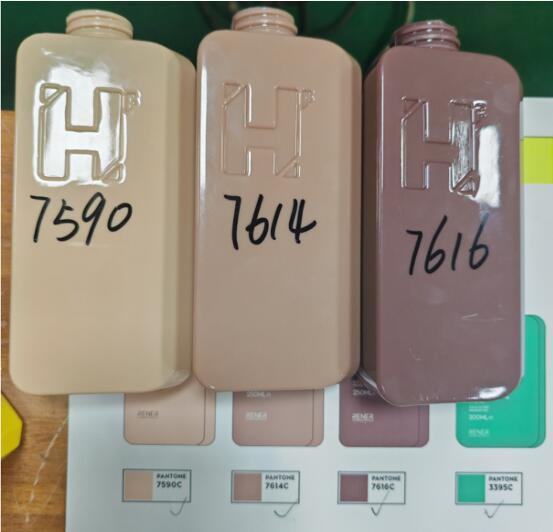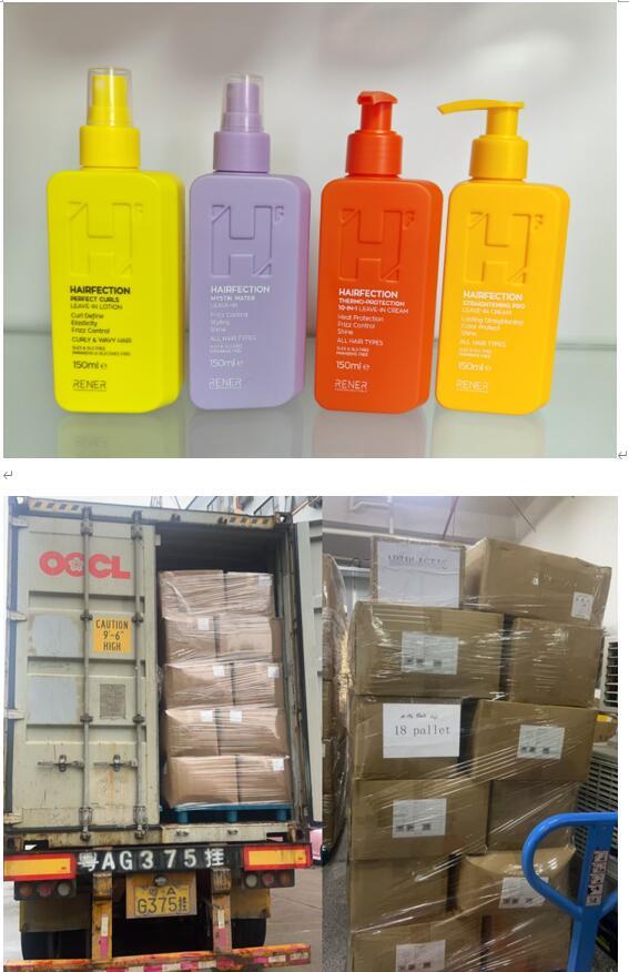 Finished Product Delivery: After production completion, the finished bottles—including 150ml Conditioner Bottles (1235C, 4120C, 107C, 7579C), 200ml Hair Mask Bottles (3395C, 346C, 603C, 388C), and 250ml Shampoo Bottles (7590C, 7614C, 7616C, 602C)—were inspected, packaged, and shipped via container to the client.
